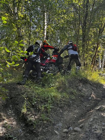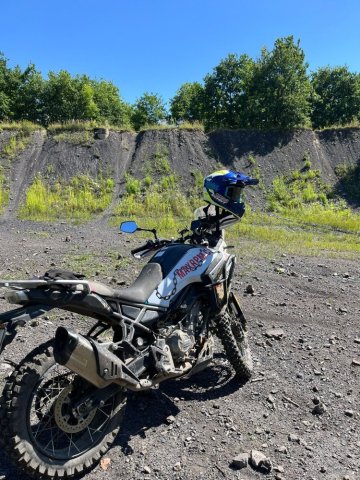 Výprava obsahovala lehčí motokrosovou třistapadesátku, přes tenerku 700, nordena 901, adventure Hondu až po CFMOTO 450MT od https://journeyman.cz/, které se opět ukázalo ve skvělé formě.
